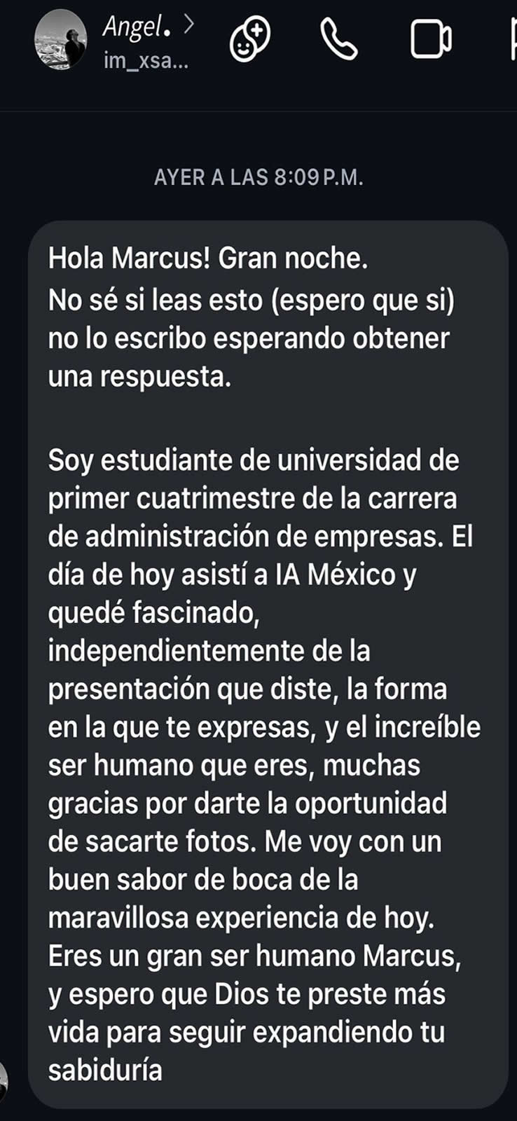 No se trata solo de escuchar una conferencia o una historia, sino de vivir una perspectiva distinta que impulsa a ver lo posible. En esta sección se reúnen mensajes auténticos de personas que han conectado con su visión y encontraron motivación para avanzar, replantear decisiones o dar ese paso que venían posponiendo. Cada testimonio refleja una experiencia distinta, pero todos coinciden en algo: después de compartir espacio con Marcus, algo cambia.